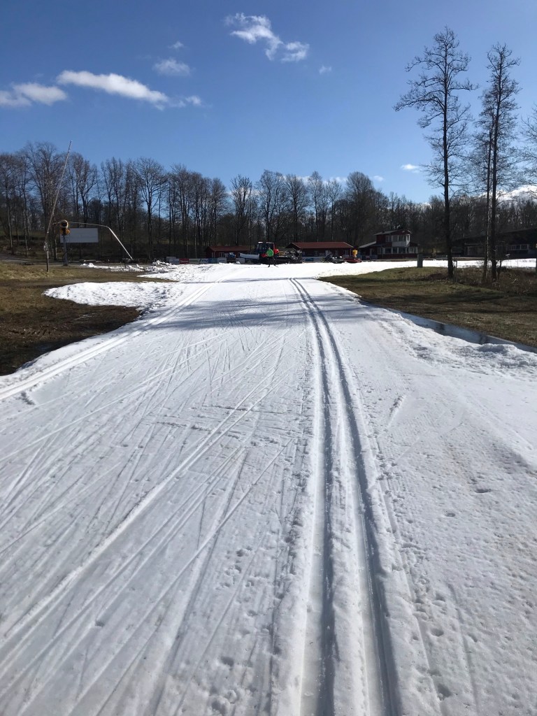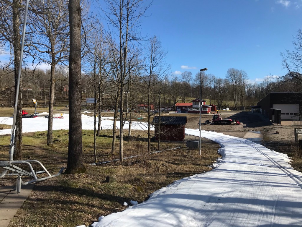 Vid gårdagens hemarbete blev längtan efter längdskidspår stor. Enda stället för utomhusbaserad åkning fanns i Borås. Så det fick bli ett lunch kombineratmed friskvårdstimme på Boråsskidstadion. Soligt, trögåkt på usla asfaltsskidor men fantastiskt utöver det vanliga.